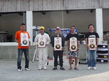 チャレンジクラス 優勝 上間 雅次 2位 城間 弘喜 3位 兼城 邦雄 4位 宮平 真人 5位 比嘉 詳 6位 野村 慎也 前回のブッチギリでの初優勝に続き2連勝を飾ったのは ランエボ8を駆る上間選手。 前回のSタイヤからNTタイヤへ変更してきましたが、 第2HEATまでミスコースで後が無い中の最終アタックで 無事走りきってチャレンジ卒業に王手を掛けました。 上間選手コメント↓ 「今回はSタイヤでのエントリーではなかったので 正直心配でした。 大会前日の練習でタイヤの空気圧のアドバイスなど いただきうまくいきました!! またこの一勝も先輩たちの指導のおかげと感謝しています!! 本当にありがとうございます!! 今後ともよろしくお願いします!」! 2位はエキシージ城間選手。 バカッ速の加速でかっ飛んでいく立ち上がりでギャラリーから 感嘆の声があがるマシンは、かなりのテクニックを必要と しそうですが、キッチリ乗りこなし優勝の上間選手までわずか 6/100秒差! 初優勝が見えてきました!! 城間選手コメント↓