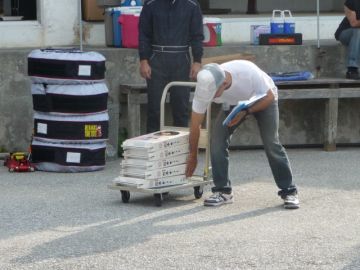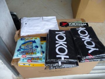 じゃんけん大会 先月参戦してくれた久保田選手からブルゾンの提供で レガシーの宮城選手が熱戦を制しゲット! 今回ファンキーなヘアスタイルで一躍「ボブ」の称号を得た 島津選手(笑)が琉球ばくだんとYOKOHAMAのタオルゲット! 先月の第2戦からエキサイティングジムカーナの開催会場と なった名護サーキット様からもお米をご提供頂きました!! 大会DVD購入者ならだれでも参加できるじゃんけん大会は お得な商品盛り沢山!! 大会参加者はもちろん、ギャラリーの皆さんもDVDを購入して ぜひ参加して下さい!! |