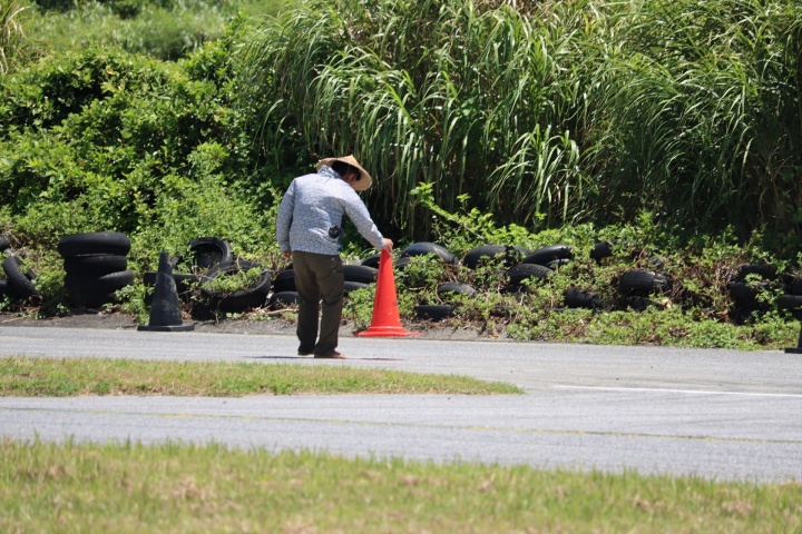 2025年8月24日、沖縄カートランドにて 今回は久々となる同じコースを2周回る 高江選手考案/エキジムアンバサダー 今大会はキッチンカーの「じんべいや」 |