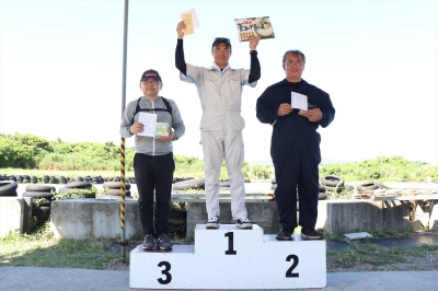RRD1+RRD2クラス 優勝 登川 和宏 3位 野村 慎也 争われた戦いを制したのは、NDロード スターの登川選手。 走るたびに修正して1秒ごとタイムを 上げていき、2位へ1.8秒の大差を付けて 連勝となりました。 登川選手コメント 「今回は同じコースを2周まわるロングコース でしたが何とか最後まで集中する事が出きて 良かったです 毎回いろいろなコース設定を走れるので楽しみです」 2位はNBロードスターでエントリーの島袋選手。 こちらも第1HEATから第2HEATは1秒タイムを 詰めてきましたが、勝負の最終アタックに 無念のタイムダウンで登川選手には届きません でした。 島袋選手コメント 「タイヤが良い仕事していたんですが、 トップはその上を行ってました。 次回頑張ります。」 3位はマシントラブルで急遽登川選手の |